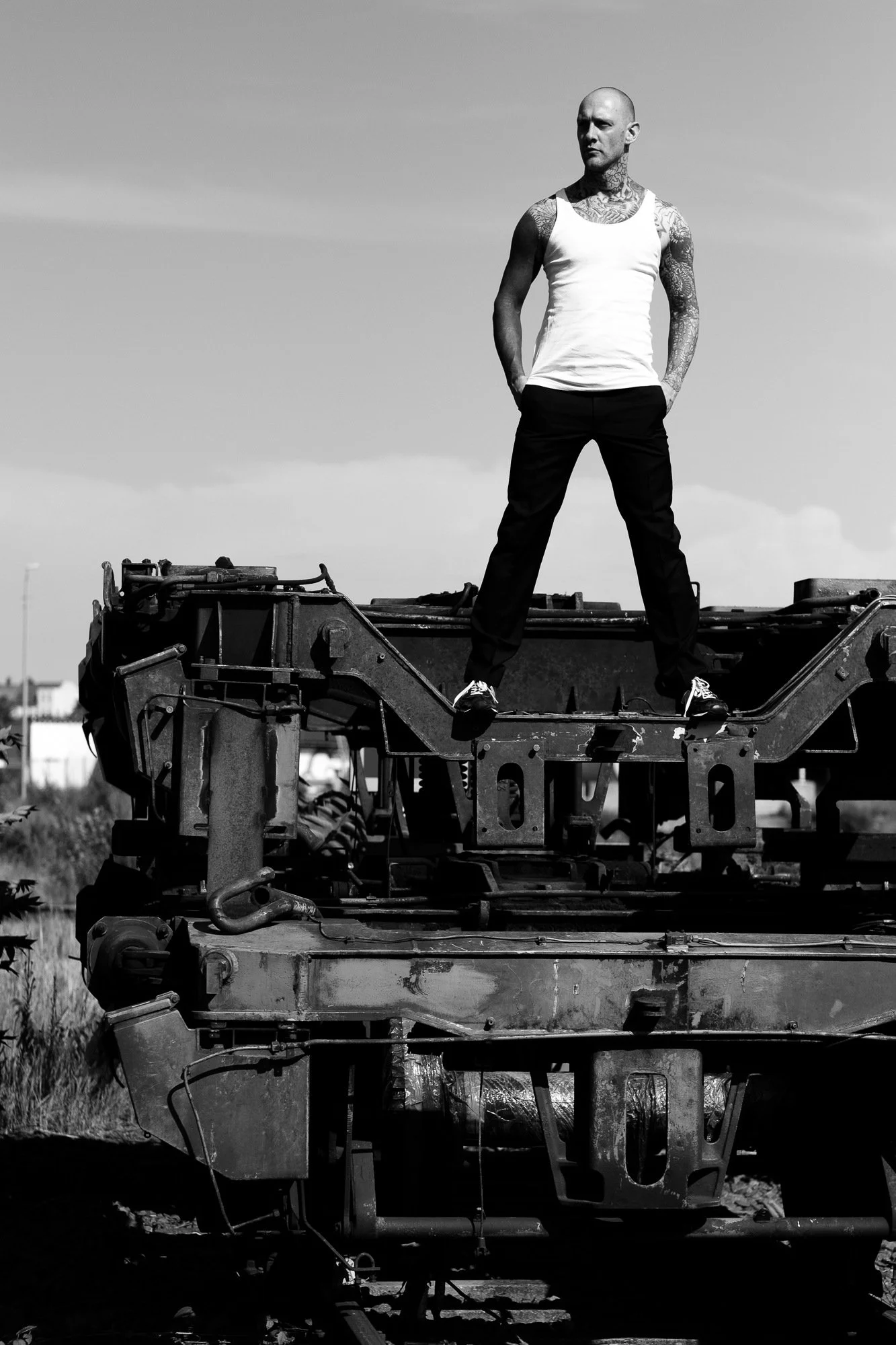 The spot was a semi-abandoned railway lot, which had so many possibilities that we really spent a couple of enjoyable hours, despite the scorching heat. We both had several great ideas we wanted to try, and I have never come home with such a large variety of photos. Normally, a model gets about 10 photos at most, but there were more than 40 I was happy with. A great model makes it easy. Photographers, shoot with this guy, he’s so damn worth the journey.