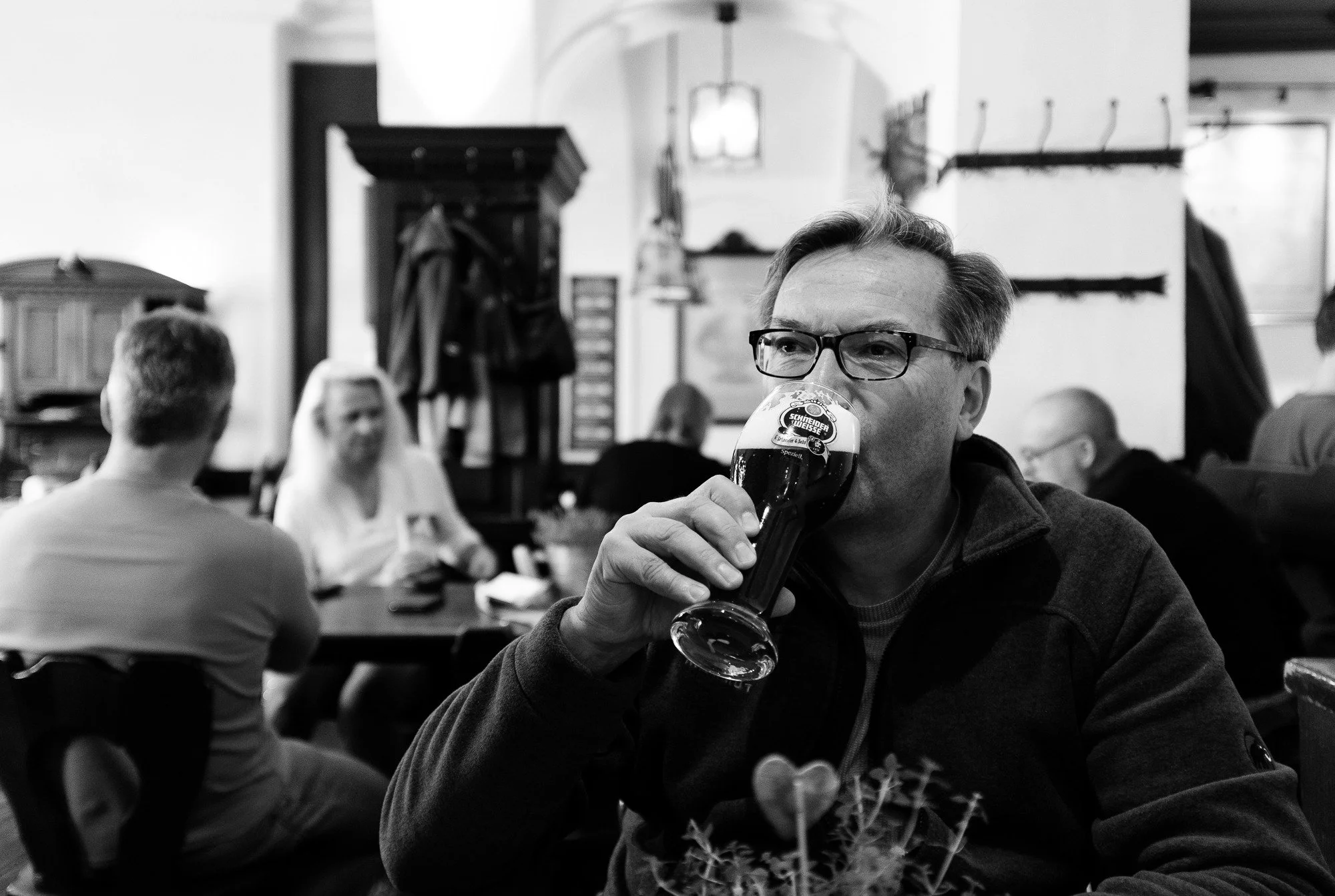 The Viktualienmarkt was quite full, so we decided to shoot a bit and make our way to the legendary Hofbräuhaus, a real tourist attraction. Despite Covid-19, it was filled with tourists from all over the world, mixed with locals, which made a pretty good, but hectic atmosphere. We were able to get a table outside in the courtyard and drank a Maß of beer. Man, that’s a bucket full! We talked about photography, work, life, and more, and eventually, Dominik Morbitzer joined us. We drank and talked some more until it was time to leave.