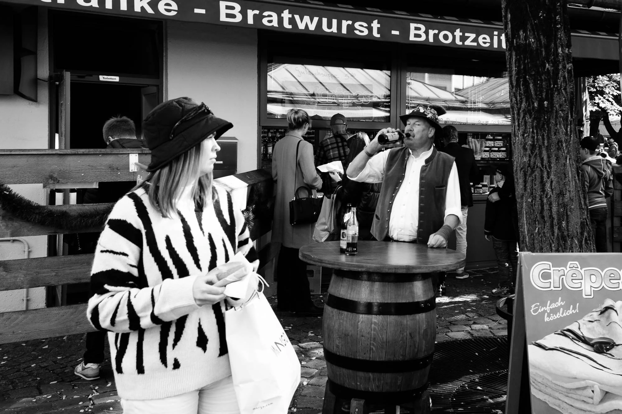 After this delicious dinner, we roamed the streets some more until it was time to meet up with the Munich Street Collective. We met up with Stefan Hellweger, and some others would join us later. We made our way to the Viktualienmarkt to shoot some street photography, and just as well, try and get a place to drink a beer.